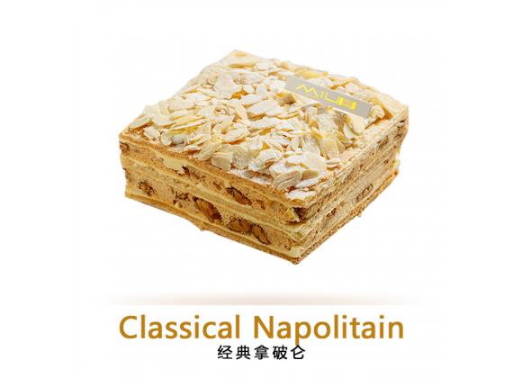 口味:港式古法制作拿破仑共有九层,三层酥皮,两层核桃蛋白饼,四层特制奶油酱搭配在一起,酥而不腻,核桃飘香,口感醇厚,你一直寻找的拿破仑就是它!